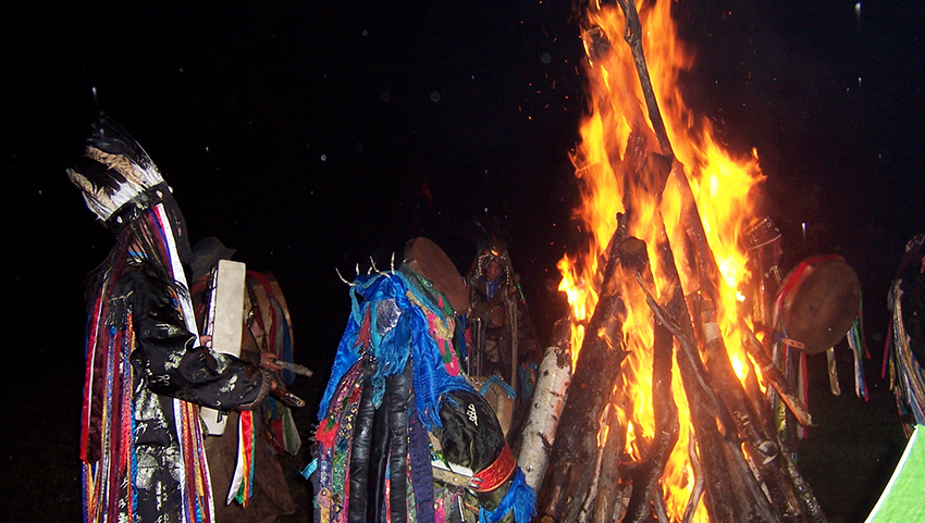 Le chamanisme est aujourd’hui encore pratiqué par des tribus isolées de Siberie, d’Asie central, d’Amerique du Nord et Sud, d’Austarlie et du Nord de l’Europe. Il ne se base sur aucun livre sacré et ne reconnaît pas d’être divin, créateur de toutes choses. Le chamanisme n`est donc pas à proprement parler une religion mais plutôt une vision de l’univers organisé en plusieurs niveaux habités par différentes familles d`esprits. Tout événement de la vie, toute manifestation naturelle sont réputés être l’œuvre des esprits: une bonne chasse, une maladie, la pluie… Le chaman entre contact avec ces esprits afin d’obtenir une guérison, des réponses ou pour pratiquer un exorcisme.